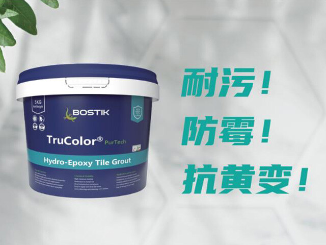 Bostik TruColor® Hydro-Epoxy Tile Grout 波士胶TruColor®氢化环氧瓷砖填缝剂是一种由氢化树脂、脂环固化剂、耐化学腐蚀的彩砂骨料组成双组分填缝料。本产品具有良好的粘附性、防黄变、防染色、防霉等性能。易于使用,对环境友好。