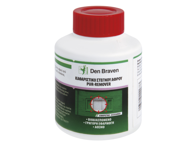 | ΕΦΑΡΜΟΓΕΣ | Το DB PUR Remover έχει σχεδιαστεί για την απομάκρυνση του στεγνού αφρού ακολουθώντας τα παρακάτω βήματα: Κόψτε με ένα μαχαίρι τα υπολείμματα αφρού όσο πιο κοντά στην επιφάνεια γίνεται. Απλώστε το PUR REMOVER και περιμένετε 30-120 λεπτά. Με μια πλαστική σπάτουλα απομακρύνετε τον μαλακό αφρό. Αφού τελειώσετε, καθαρίστε την επιφάνεια με ένα βρεγμένο πανί. Εάν χρειαστεί, επαναλάβετε τη διαδικασία. Μετά τη χρήση ασφαλίστε καλά το δοχείο γιατί το υλικό είναι υγροσκοπικό και θα απορροφήσει υγρασία. Εάν απορροφήσει υγρασία θα χάσει την δύναμή του. |