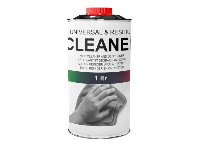 Universal and Residue Cleaner is een mild reinigingsmiddel voor het schoonmaken van oppervlakken en gereedschappen, met name voor het verwijderen van verse primer-, kit- en lijmresten c.q. verontreinigingen.