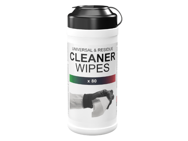 Universal and Residue Cleaner Wipes zijn gebruiksklare, handige en uiterst doeltreffende schoonmaakdoekjes. Universal and Residue Cleaner Wipes verwijderen niet-uitgeharde siliconenkit, niet-uitgehard PU-schuim, olie, de meeste lijmen, verven en vet van handen, gereedschap en ondergronden. De bus is verzegeld met een beschermende folie, welke voorkomt dat de doekjes uitdrogen.