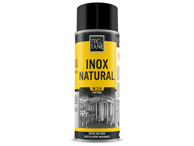 IN 318 INOX NATURAL é uma pintura decorativa e protetora em spray, com alto poder de cobertura, graças à sua composição baseada em resinas e pigmentos especiais que conferem uma elevada resistência e brilho.