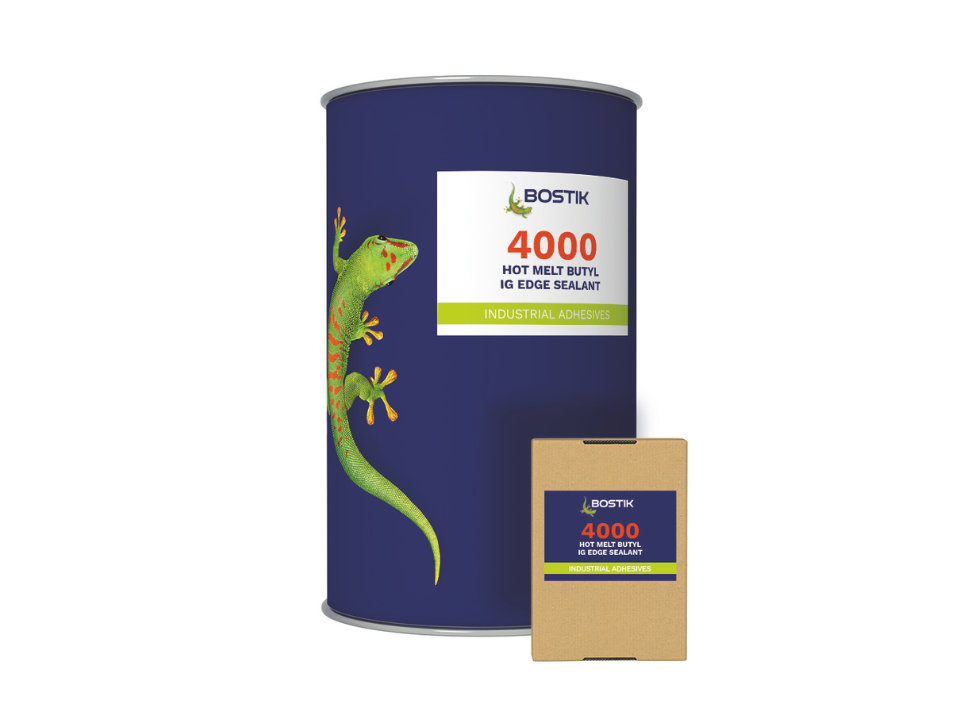 Bostik 4000 Hotmelt Butyl has been specifically formulated for use in the production of insulating glass units. Bostik 4000 is a single part butyl rubber based sealant which, when applied at the correct temperature, sets quickly from its molten state allowing units to be moved from their assembly location between two and five minutes after application. Units can therefore be sealed and glazed within the same day. Bostik 4000 has a high output and fast heat loss enabling optimum turn round of unit production. The combination of these properties also means that corner defects can be easily avoided thereby ensuring a complete seal around the unit.