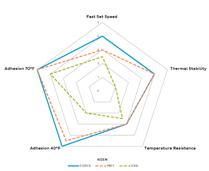 Why choose Kizen Force adhesive instead of conventional EVA and Metallocene for Case & Carton sealing?